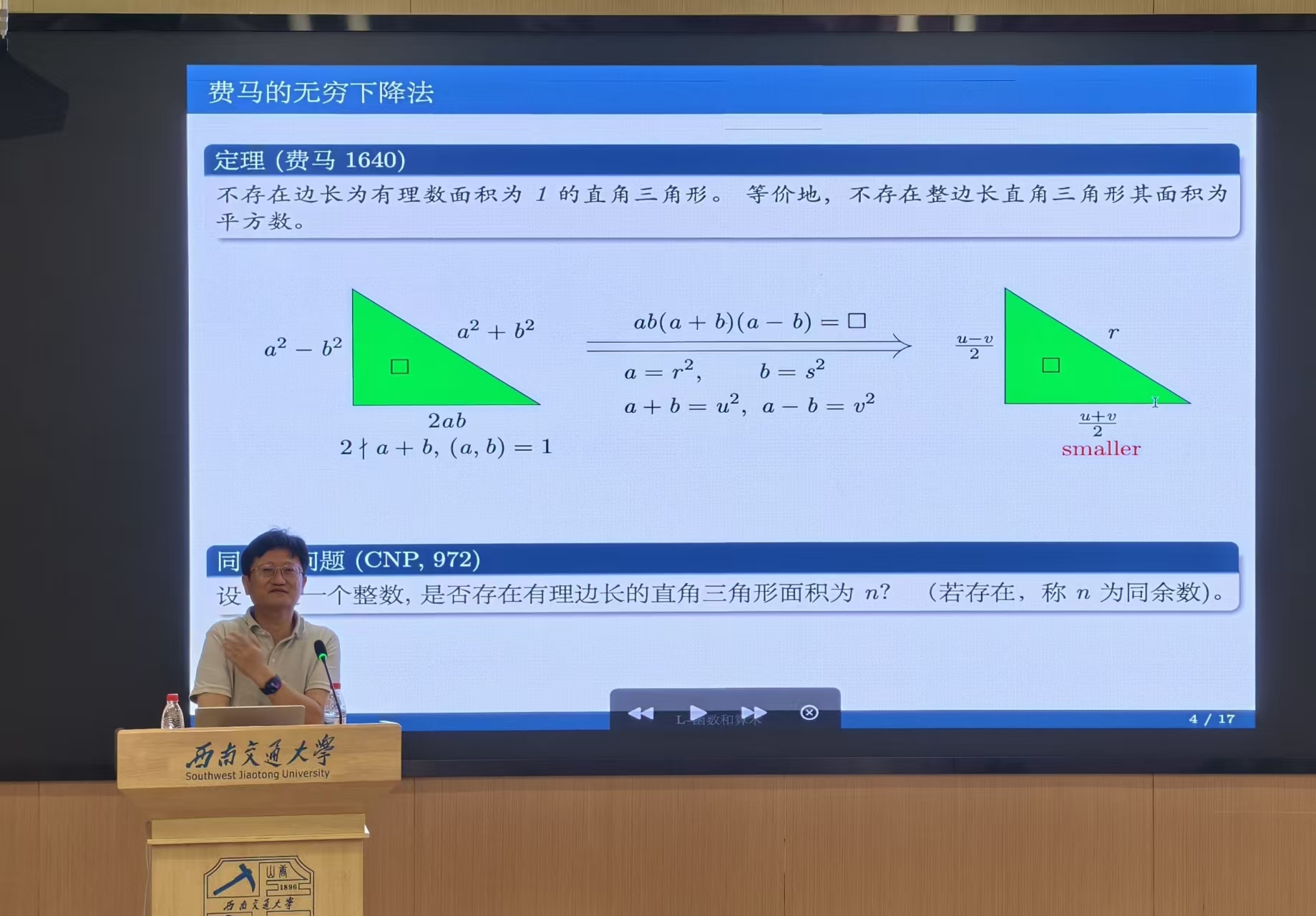 在报告中,田野院士从数学家费马研究的三个著名问题入手,深入浅出地介绍了“L-函数”的起源、牛顿和莱布尼茨所建立积分理论对于“L-函数”理论研究的影响以及近年来“L-函数”理论的研究进展,与椭圆曲线的“L-函数”理论和“BSD猜想”之间的深刻内在联系。