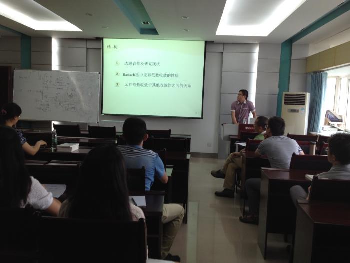 数学系2013级硕士研究生毕业论文中期检查工作在X2511学术会议室顺利完成。出席此次论文指导活动的有学院副院长陈滋利教授、副院长杨晗教授、院长助理范小明教授,数学系党支部书记冯颖老师,陈金喜副教授、樊明书副教授以及部分青年博士教师。