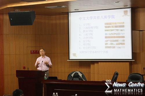 会议伊始,被介绍上台的陈汉夫教授用流利的英语为大家讲解的香港中文大学概况以及报考研究生等诸多问题。香港中文大学,成立于1963年,是香港第二所大学,也是八所受政府香港大学教育资助委员会资助并可颁授学位的高等教育院校之一。其为香港唯一实行书院联邦制的高校。香港中大曾经有4名教授和1名校长获得诺贝尔奖。现时以中国研究、生物医学科学、讯息科学、经济与金融及地球信息与地球科学为五大重点研究领域。大学共有八所学术学院,大部分的课程均以英语为教学语言。