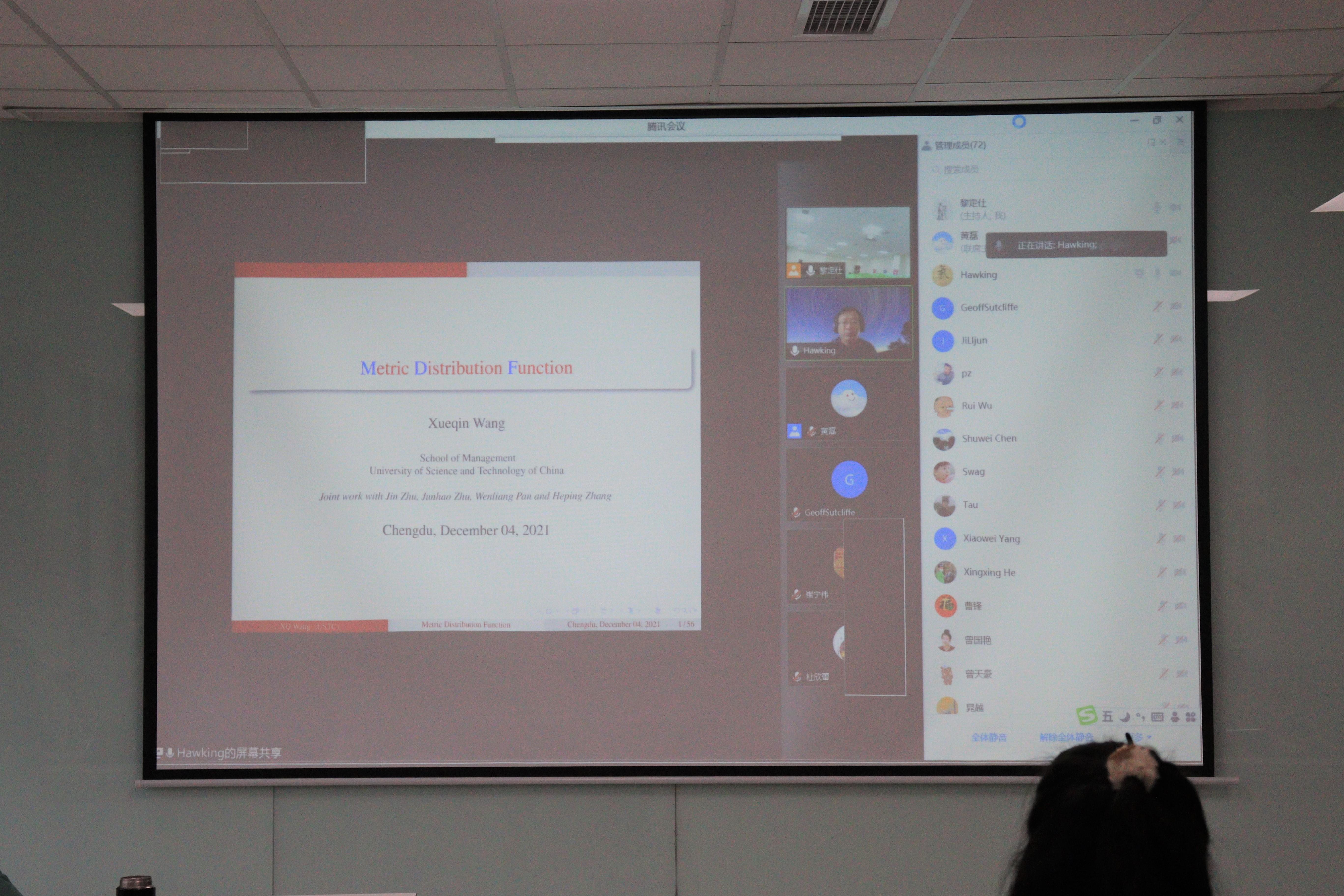 的基本情况以及交大数院取得的科研成果。最后,他希望疫情结束后大家能相聚在美丽的蓉城进行学术交流,并对今天作报告的五位专家表示了衷心的感谢。