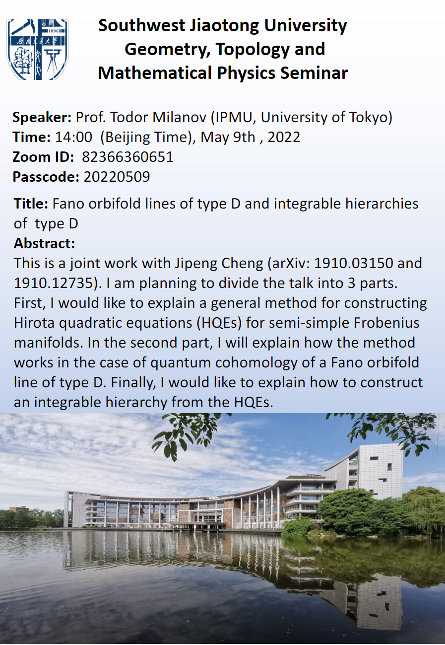 上一条:四川大学-茄子视频 数学论坛几何拓扑系列讲座——The GW/DT correspondence, resurgence, andgeometry 下一条:“大学数学国家虚拟教研室成立大会暨首次研讨会”会议通知