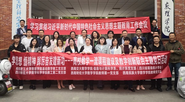 教工信息与计算科学系党支部、教工统计系党支部联合四川师范大学数学科学学院教工第二党支部、成都理工大学数理学院基础数学教学教工党支部、四川省现场统计学会党支部于2023年4月22日在成都理工大学数理学院举行了“学思想 强党性 重实践 建新功——高校数学一流课程建设及教学创新联合主题党日活动。该主题党日活动依托“第二届高校数学一流课程建设及教学创新论坛”举办,研讨会由成都理工大学数理学院基础教学部党支部书记舒畅主持。茄子视频