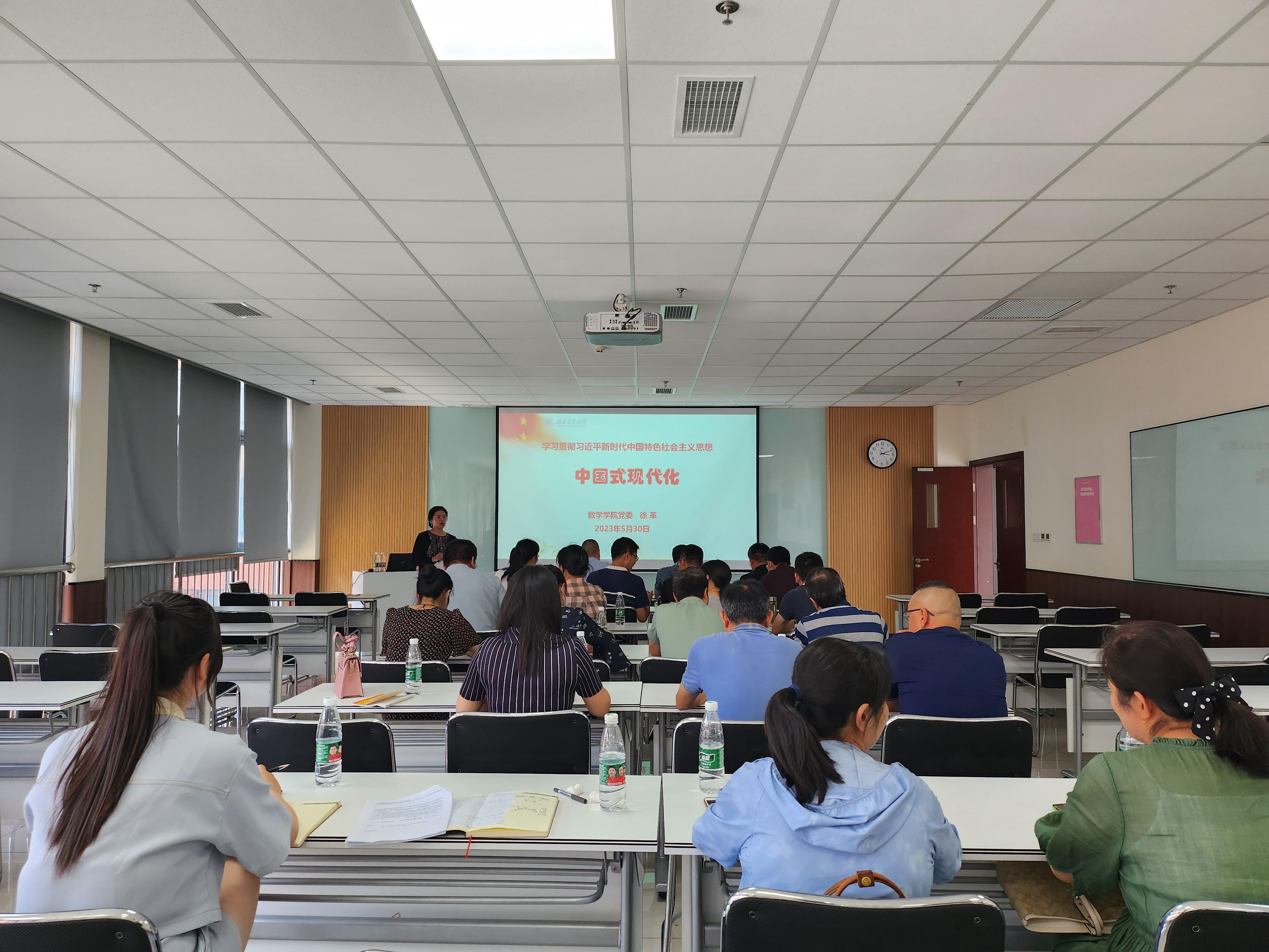 徐革书记最后强调,中国式现代化理论是党的二十大的一个重大理论创新,是科学社会主义的最新重大成果,要继续加强学习,深刻理解中国式现代化理论和全面建设社会主义现代化国家战略布局的关系,深刻理解中国式现代化理论是基于中国国情、中国现实的重大理论创新,把思想和行动统一到党中央的决策部署上来。广大党员干部要带领全院师生,继续切实开展好主题教育,要把习近平新时代中国特色社会主义思想转化为坚定理想、锤炼党性、推动工作的力量,把开展主题教育与岗位工作紧密结合起来,立足本职,真抓实干,为促进学校学院事业发展贡献力量!