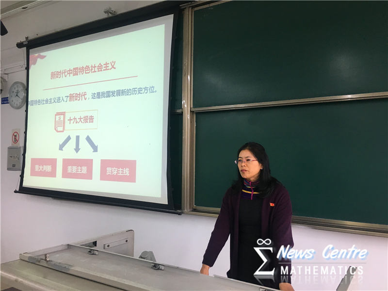 其后,徐革老师向同学们介绍了十九大的主题:不忘初心,牢记使命,高举中国特色社会主义伟大旗帜,决胜全面建成小康社会,夺取新时代中国特色社会主义伟大胜利,为实现中华民族伟大复兴的中国梦不懈奋斗。他从社会主要矛盾的转化、新时代中国特色社会主义的历史使命、基本方略、行动纲领等方面向同学们介绍了十九大的重要精神。