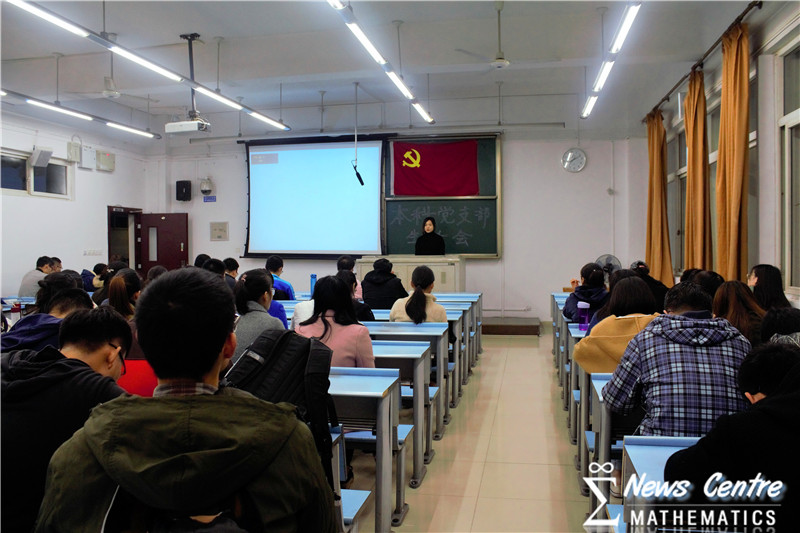 于2017年11月16日晚7:30在X2535召开“发展党支部大会”,大会由数学党支部书记李绍俊同学和统计党支部书记任艺凝同学主持。