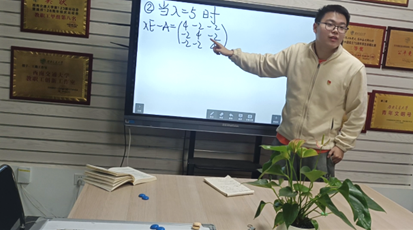 在自由交流环节,留学生代表张骁宏、梁建平、明礼安、沙宽、杨日光分别就数学学习中遇到的困难和对帮扶计划的意见建议发言。明礼安同学分享了跨文化教学适应问题:“我们习惯了具象化的几何教学,而线性代数中向量空间的抽象概念让我难以形成直观认知。”高效的互动不仅厘清了帮扶小组现阶段学习难点,更为下一阶段帮扶方案的优化提供了详实的实践依据。