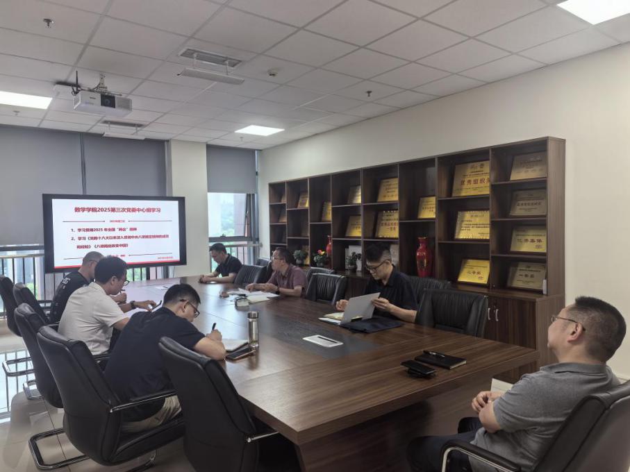 5月29日下午,在犀浦校区X30429会议室开展学院党委理论学习中心组二〇二五年第三次集体学习,由院长兼学院党委副书记杨晗主持,并领学党的十八大以来深入贯彻中央八项规定精神取得的显著成效和积累的宝贵经验。学院党政领导班子成员、党委委员等参加学习。杨晗院长领学后强调,院领导要继续带领全院教职工把深入贯彻中央八项规定精神学习教育与推动学院发展结合起来,以国家战略需求为导向,夯实数学基础研究,推动交叉创新,为国家培养大批高素质数学人才。