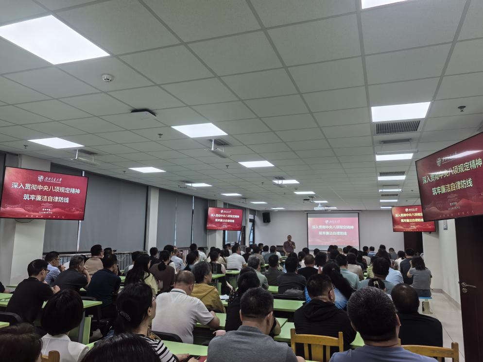 杨晗院长为全体教师做《深入贯彻中央八项规定精神 筑牢廉洁自律防线》专题教育,并强调:全院教师要继续提高认识,把贯彻落实中央八项规定精神作为长期政治任务,筑牢廉洁自律防线。