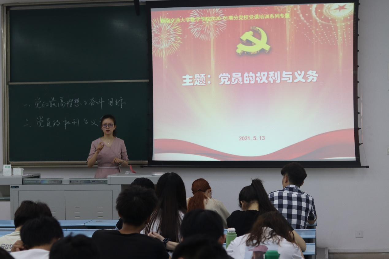 团委书记邓思然主讲,内容为“党的纲领和奋斗目标”和“党员的权利与义务”。