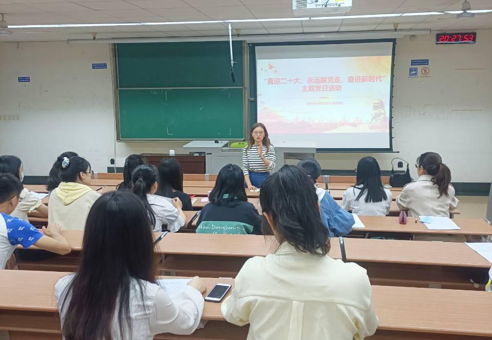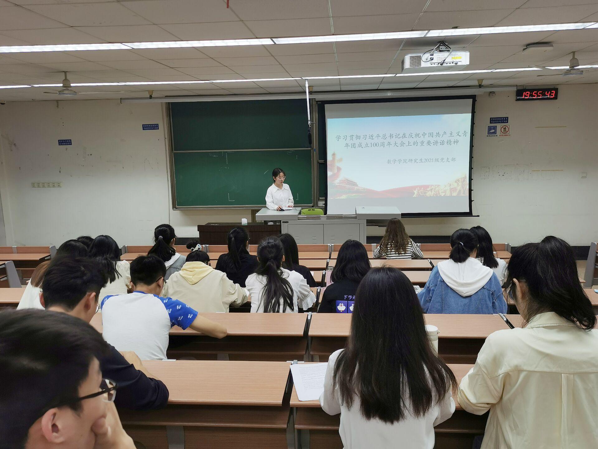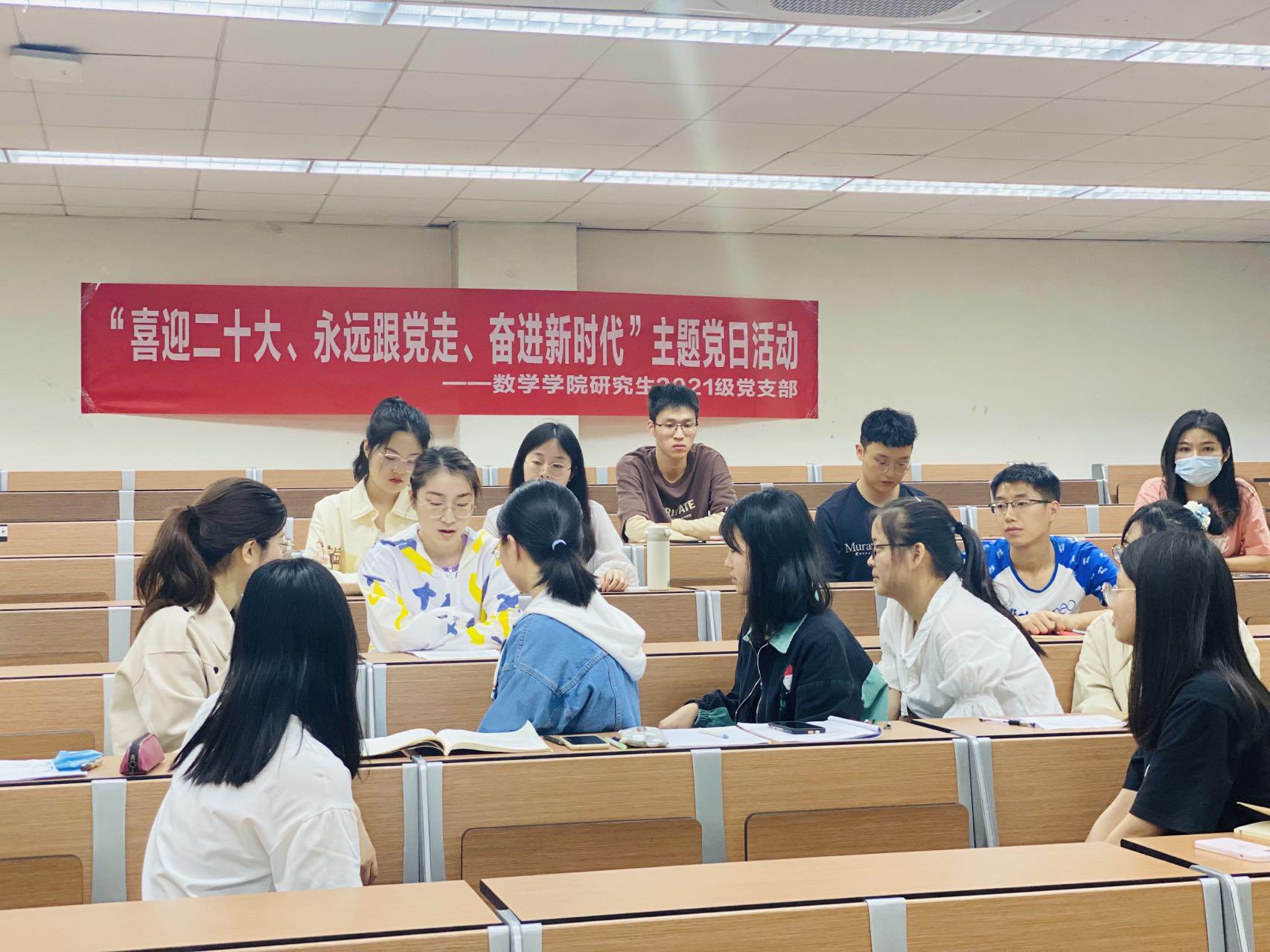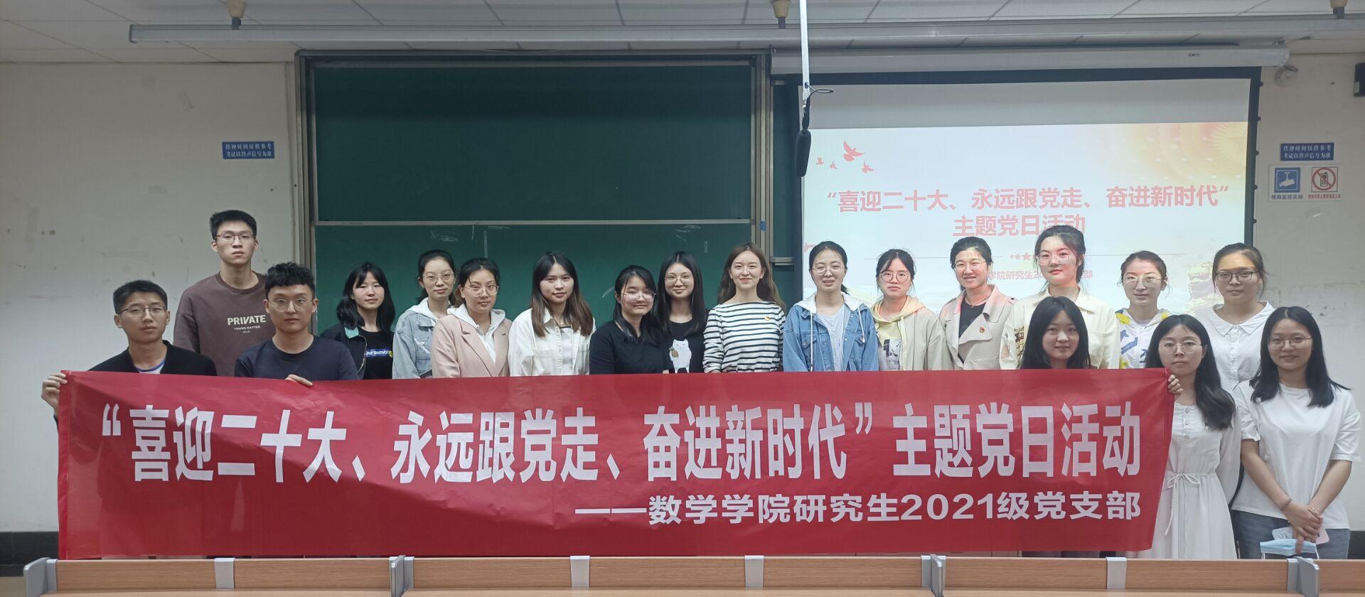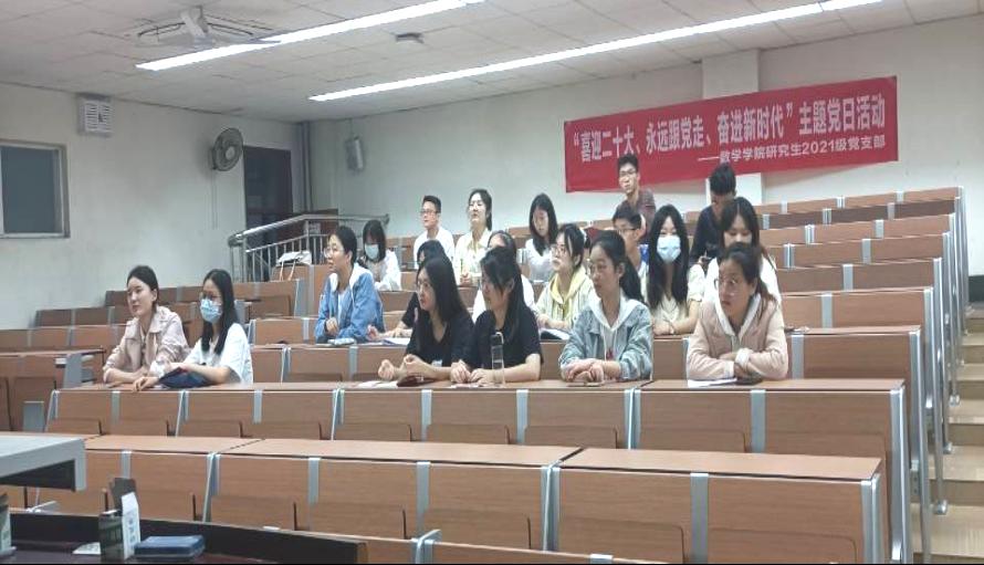 研究生2021级党支部于2022年5月16日晚7:30,在J4223开展“喜迎二十大、永远跟党走、奋进新时代”主题党日活动,活动邀请了负责学院研究生党建指导的邓思然老师现场指导,支部成员全员参与,党支部书记王乐主持。