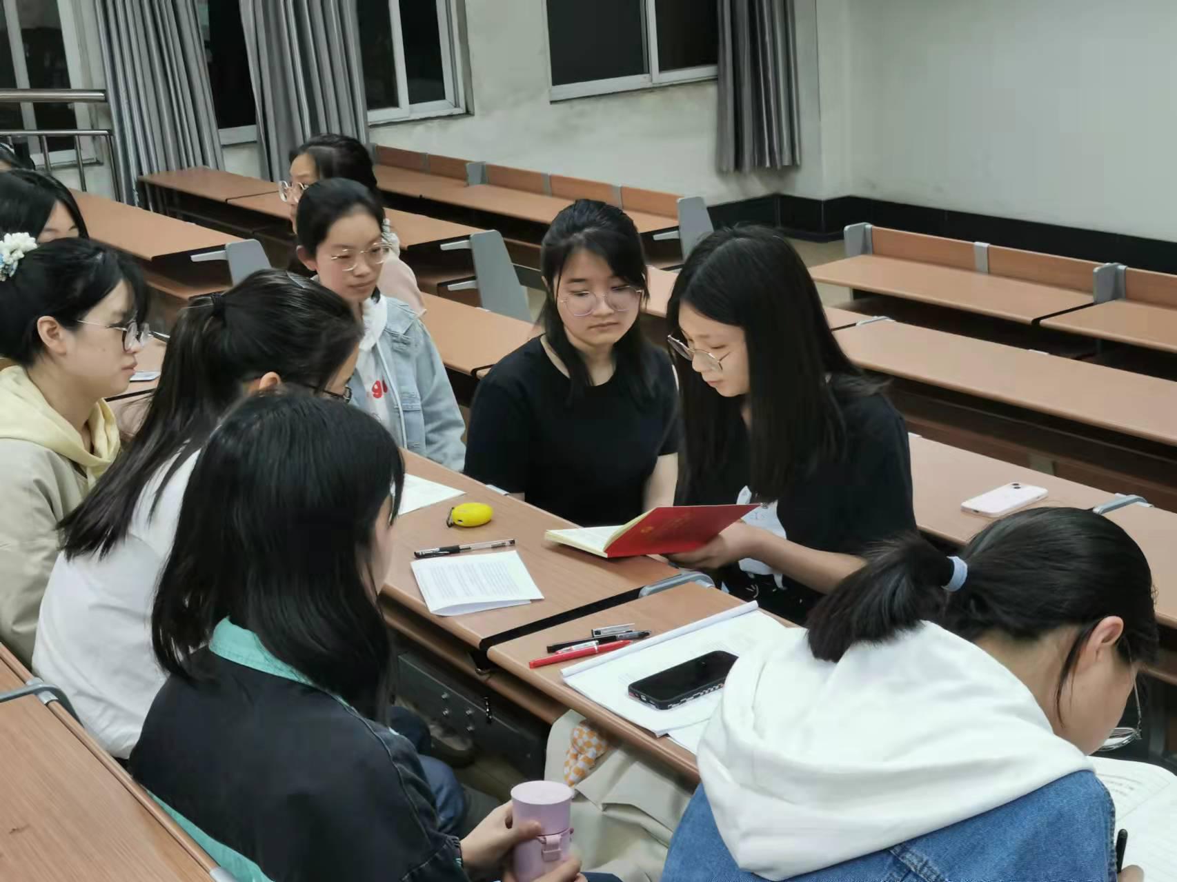 听完了李冉同志的领学,同学们感触良多,纷纷发表自己的看法。刘新玲同学表示,我们要坚定不移听党话、跟党走,努力成长为堪当民族复兴重任的时代新人!” 吴怡同学说道:“我们要继续学好“思政”这门必修课、读好“实践”这本无字书,做到与党和国家同呼吸、共命运,努力成长为与历史同向、与祖国同行、与人民同在的‘强国青年’。”