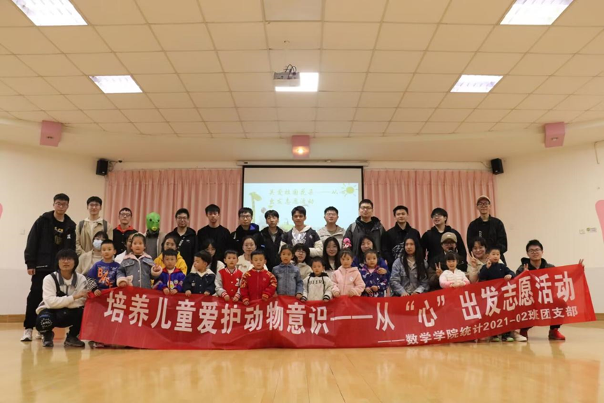 统计2021-02班团支部“ 关爱祖国花朵——从心出发”志愿活动圆满结束。在这堂生动的小课堂里,幼儿园的小朋友们在表演与游戏之中学习到了知识,增强了爱护小动物的意识,教育孩子们保护大自然和我们赖以生存的环境,而同学们在与祖国花朵的接触中,被他们的真诚所感动,坚定了奉行奉献、友爱、互助、进步的志愿精神,为社会提供志愿服务的决心。