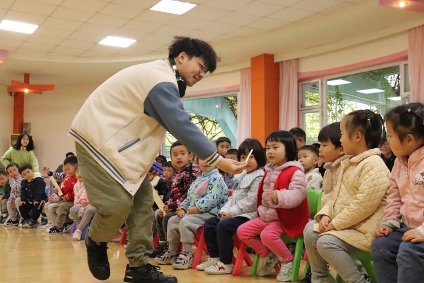 同学们为幼儿园的小朋友们准备了小品表演、知识问答、游戏互动,以及魔术表演,希望小朋友们树立起保护动物的意识。同学们手持珍稀动物玩偶,为小朋友们上演了动物保护情景剧。同学们通过“自我介绍”,讲述了动物们或因皮毛鲜艳或因药用价值而面临着被非法捕猎的威胁。孩子们积极参与互动,一问一答中,“保护珍稀野生动物,从我做起,人人有责”的意识在小朋友们心中生根发芽。