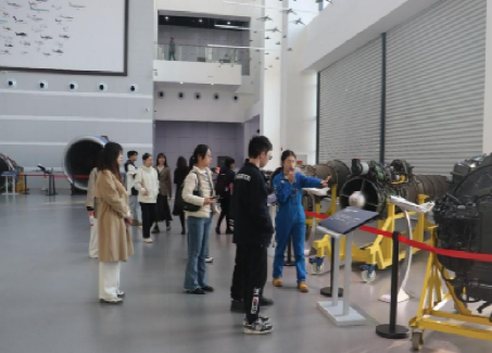 随后,成员们跟随讲解员移步室内展览馆。展览馆以“过去-现在-未来”的时空概念为陈列主线。其中主要展陈的板块有:飞行的探索、飞机与战争、飞机的心脏、飞行原理区、现代空中力量、空天一体新时代。在参观过程中,成员们深入了解了航空科技的发展和应用。航空科技涉及到众多学科领域,这加深了同学们对于交叉学科应用的理解,培养了跨学科思维,同时也激发了成员们强烈的爱国情怀。