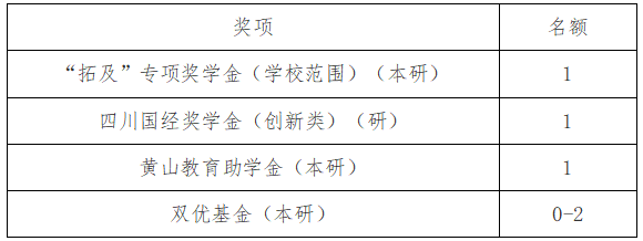 专项奖助学金可推荐名额如下: