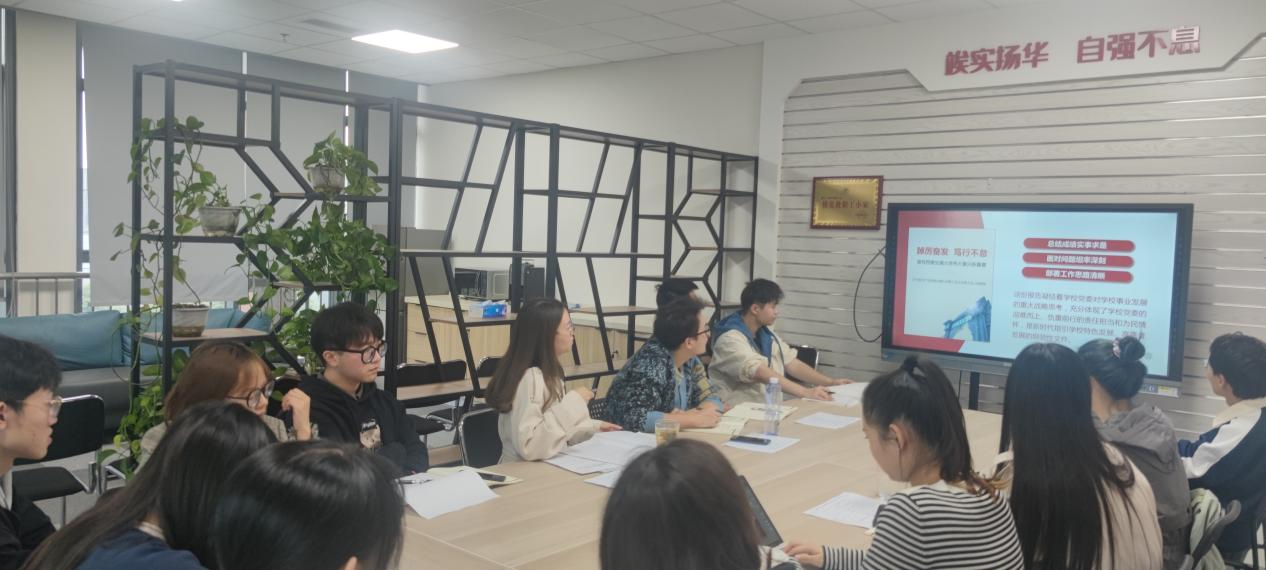 团委在X30450活动室组织专兼职团干以及主要学生骨干再次集中学习学校第十五次党代会精神。学院团委委员、各团学组织指导老师及主要学生负责人参加本次研讨,研讨会由团委书记邓思然主持。