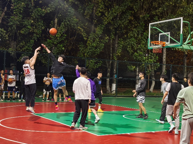 的球员们分别与建筑学院和交运学院的球员们在球场上展开了激烈的角逐。每一场比赛都是对球员们团队协作的考验,他们在场上的每一次传球、每一次投篮都充满了对篮球的热爱。场边的观众也被这种积极的氛围所感染,他们的加油声和欢呼声为比赛增添了更多的激情与活力。无论是与建筑学院的对决,还是与交运学院的较量,球员们都全力以赴,展现了极高的竞技热情和团队合作精神。