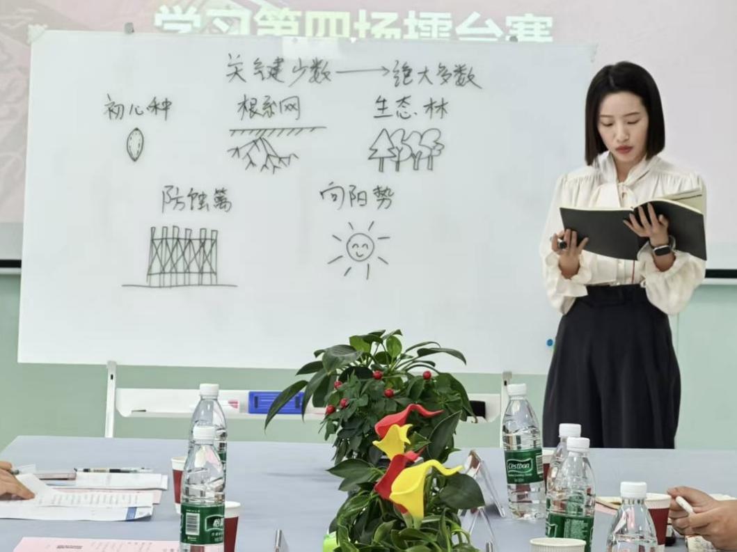 领学中,秦思远老师以图文并茂的形式围绕“头雁领航”,结合自身教学科研经历,强调讲师团成员需发挥“头雁效应”,以“言行一致”“终身学习”践行“以身作则”要求,通过分享理论学习心得与育人案例,将作风建设“种子”播撒进师生心中。谈及“扎根润土”,她结合宿舍走访、学业帮扶等工作场景,提出要以“沉浸式陪伴”深入学生,践行“以学生为中心”的服务理念,厚植群众工作根基。针对“铁规育苗”“清风照鉴”,秦思远老师结合学院奖学金评定、竞赛推荐、经费管理等工作,解读制度刚性与育人柔性的结合路径,强调要以“公平公正”的制度温度培育清正校园生态,通过“公开透明”的监督机制,在“小微权力”环节筑牢廉洁“防腐墙”。最后,围绕“刮骨疗毒”,她结合校园不良风气整治案例,呼吁守护学生“拔节孕穗期”,以风腐同治助力青年健康成长。