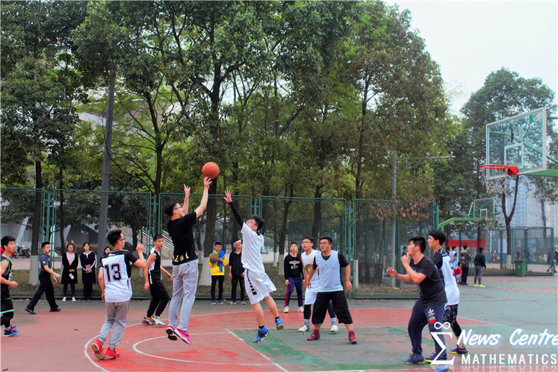 院系篮球赛决赛在北区篮球场火热开战。傍晚时分,大二数学班对战大二统计班的总冠军角逐拉开帷幕,学生会指导老师敬思惠老师到场统筹本次比赛的相关事宜并为参赛选手加油助威。