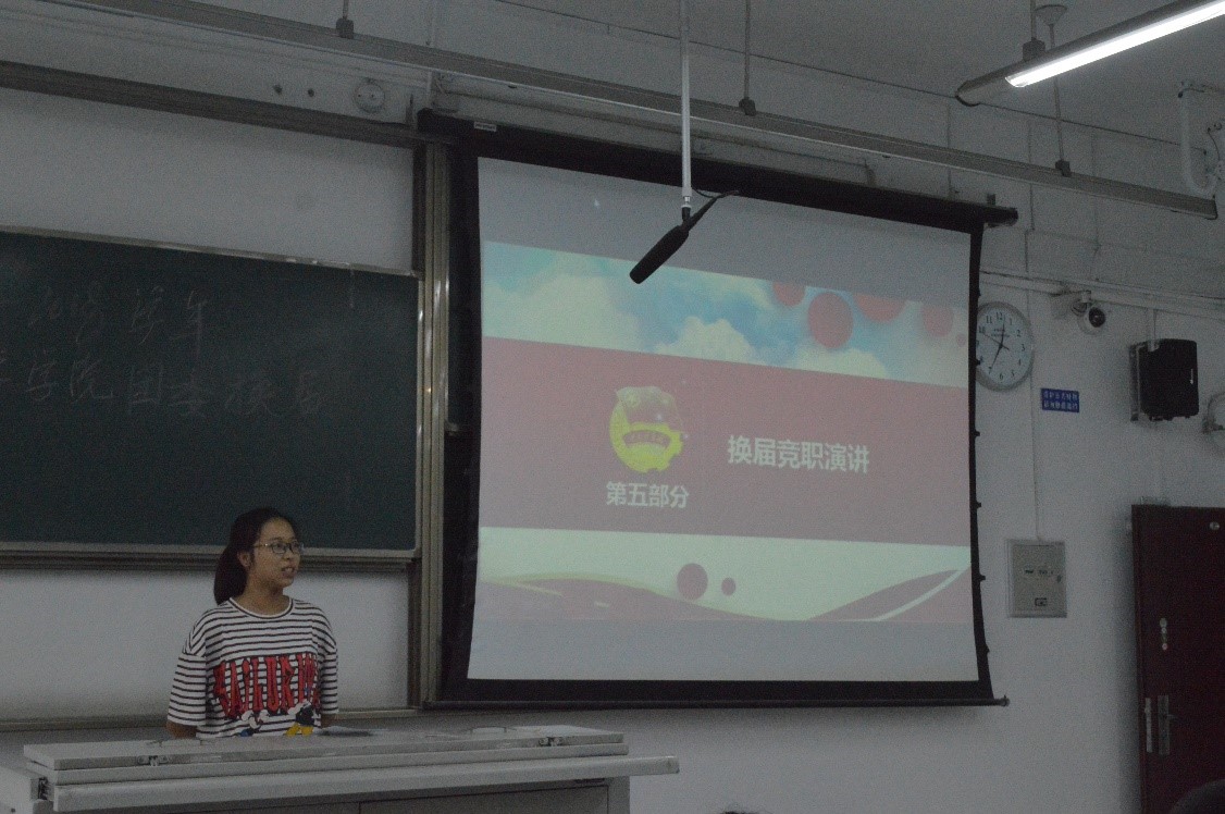 大会第五项,换届竞职演讲。候选人从自我评价、工作总结和未来工作的规划等方面详细地介绍了自己。表明了自己想要留在团委并继续为其服务的决心。