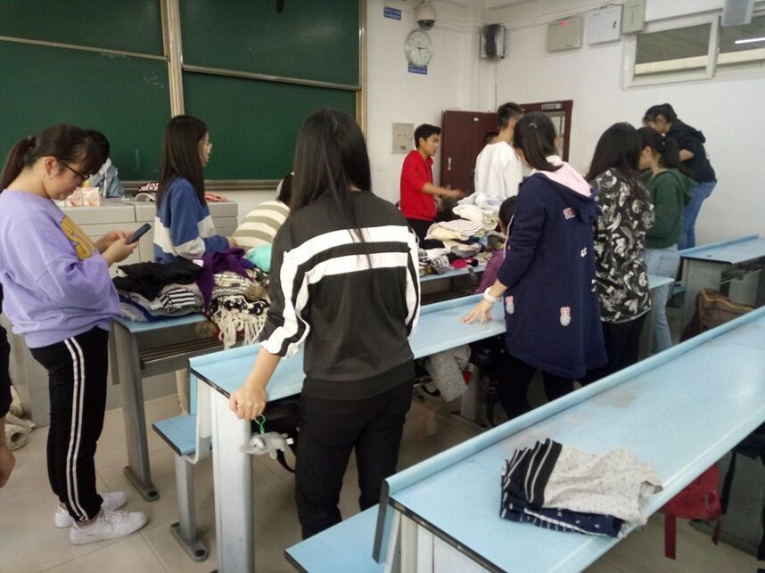 10月25日下午3时50分,活动人员开始在X2529对收集到的衣物进行整理,不少非青协的同学们也都来帮忙。男生把衣物从寝室运到教室来,女生在电梯口接送衣物,合理的分工使得工作效率大大提高。运送完衣物后活动人员都来到教室整理衣物,按着薄衣服、厚衣服、牛仔裤、非牛仔裤等等标准,先将衣服分好类别并叠好,然后再将衣服整齐的放进麻布口袋里。大家都积极参与协同合作,活动顺利的进行着。整理结束后,负责人员将整理好的衣物送到成都义工接收处,最后在协会官方微博及QQ上进行活动总结及反馈,该次活动到这里就算拉下了帷幕。