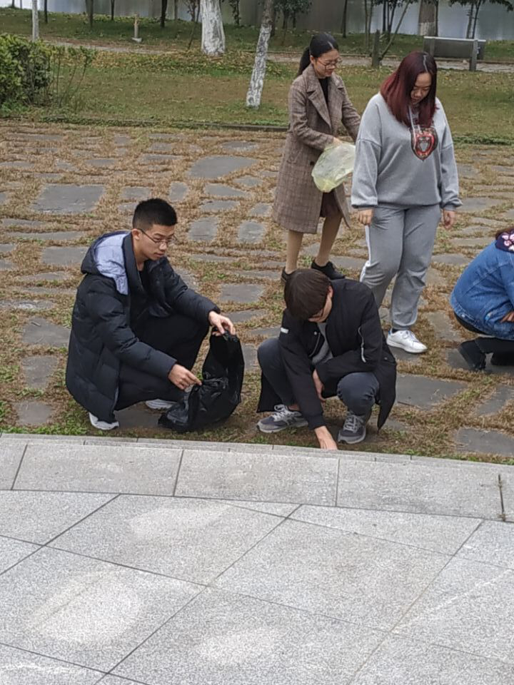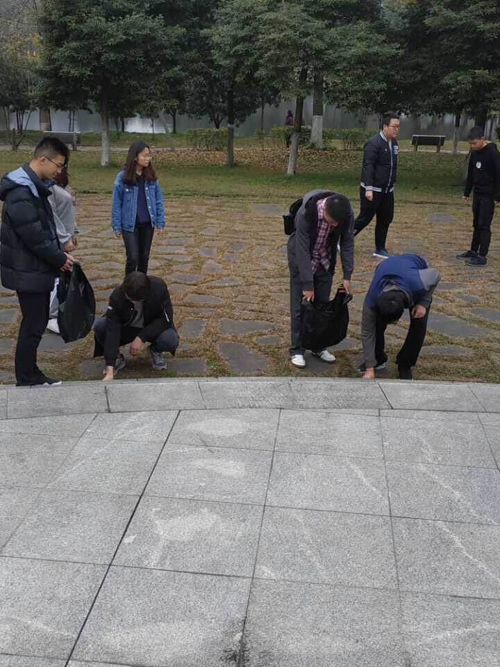 首先,在团支书的带领下,17级数学二班的全体同学于周六下午245到达了钟亭。同学们首先以宿舍为单位带了垃圾袋,在团支书、组织委员和宣传委员的组织下,同学们被随机的分成了五个小组,并且选出了每个小组的组长。班委们首先先将钟亭附近划分出了五个区域分别由五个小组对应负责,最终打扫最快、最干净的小组将会获得相应的奖励。同学们在各个组长的带领分配后开始了各自的工作,大家积极认真的检查钟亭附近的每一个区域,争取不放过每一个角落。每一个同学的积极性都很高,希望尽自己的一份力为自己的小组争取到最终奖励。五个小组陆续完成工作之后,在班长、副班长和团支书的检查后,班级同学集体选出第三组为最佳小组,并由生活委员为第三小组颁发了奖品。