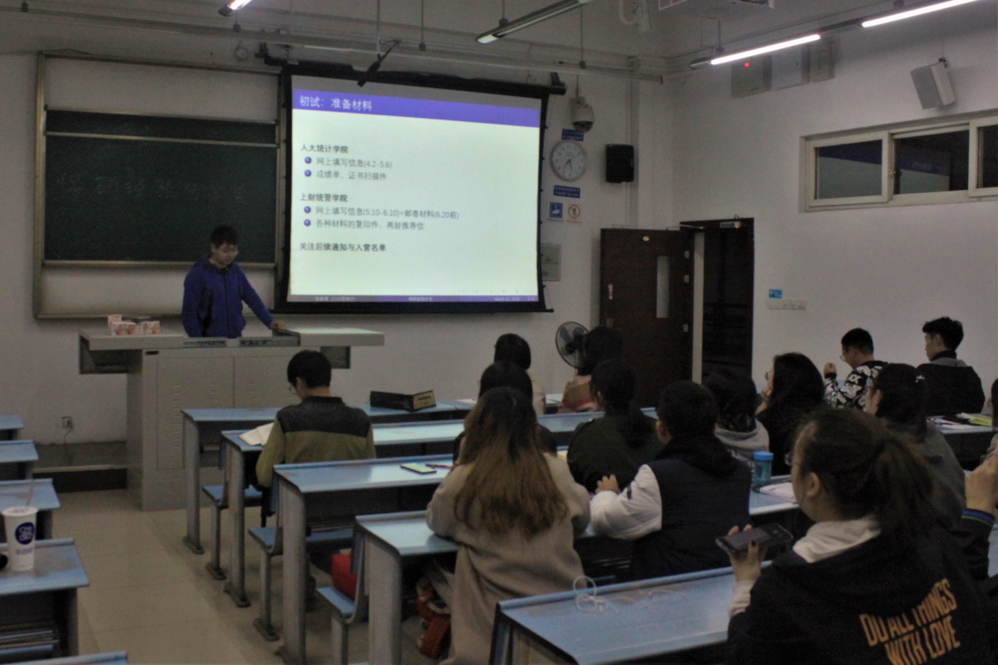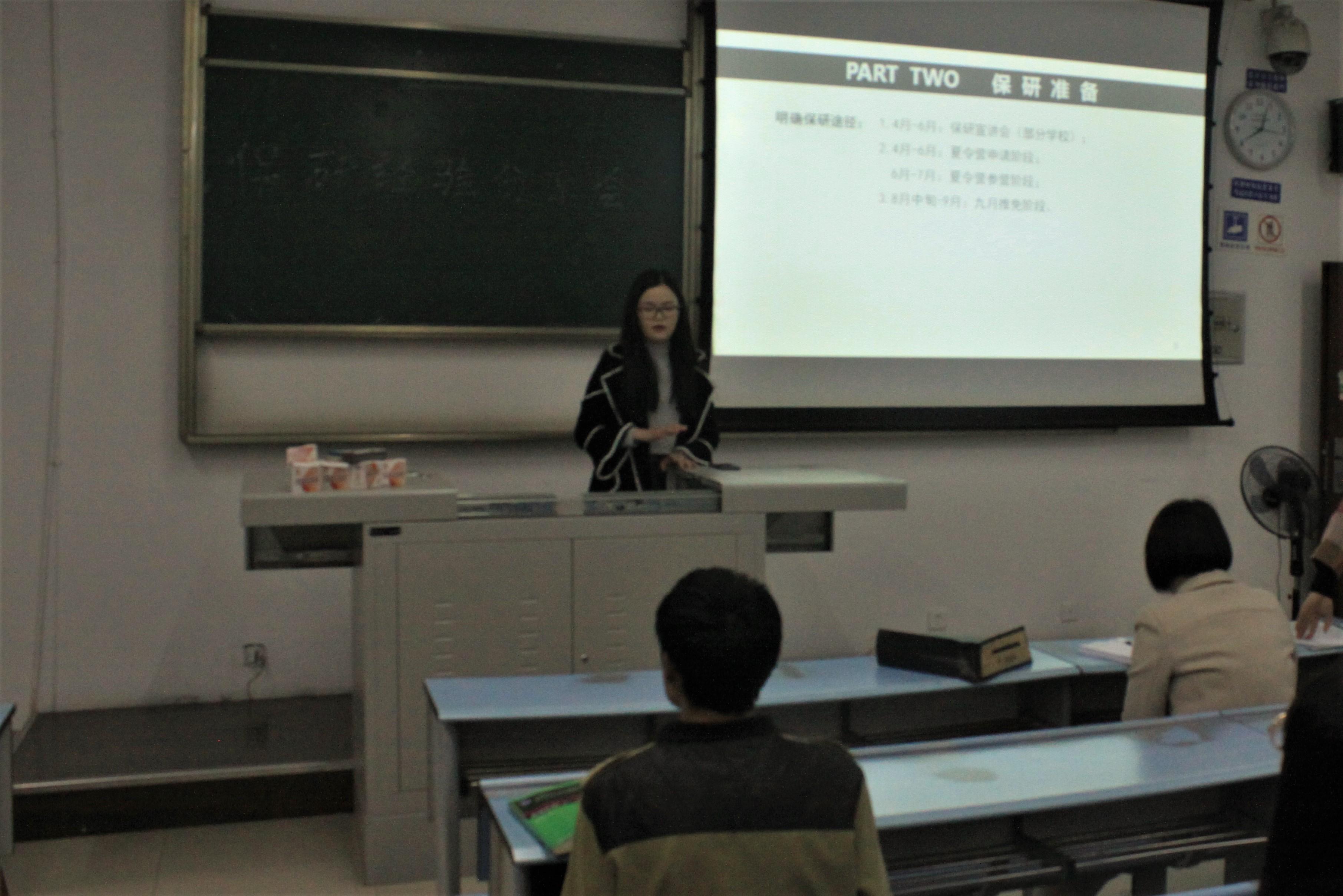 就业指导系列活动第三期——保研经验交流分享会在X2429召开。16级、18级辅导员钟义婷、15级辅导员李思佳、15级优秀保研生以及部分16级、17级学生到场参加此次保研经验交流分享会。