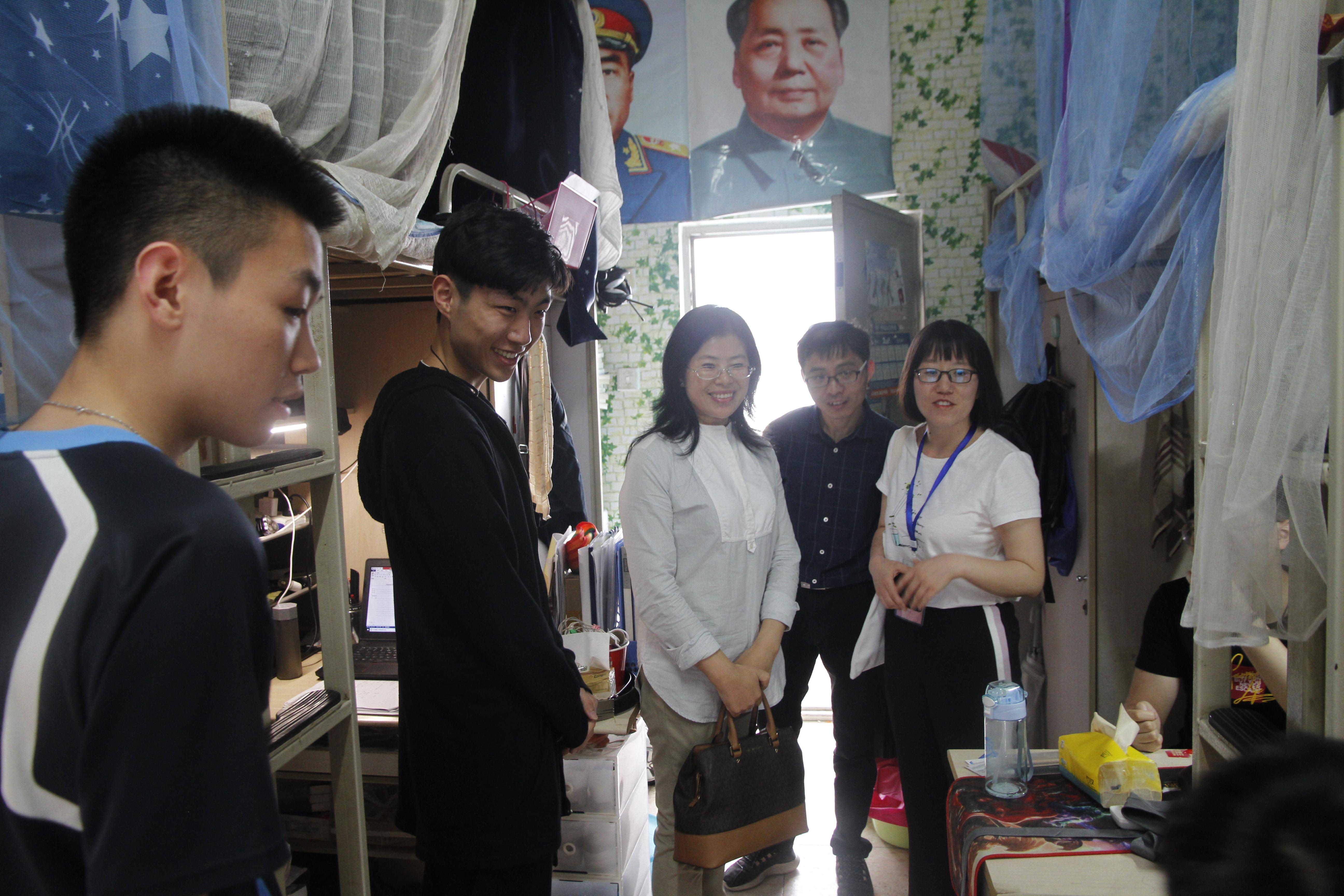 党委书记徐革、党委副书记杨育鸿以及15级辅导员李思佳一行人前往天佑斋20栋、3栋的本科大四毕业生寝室看望毕业生。