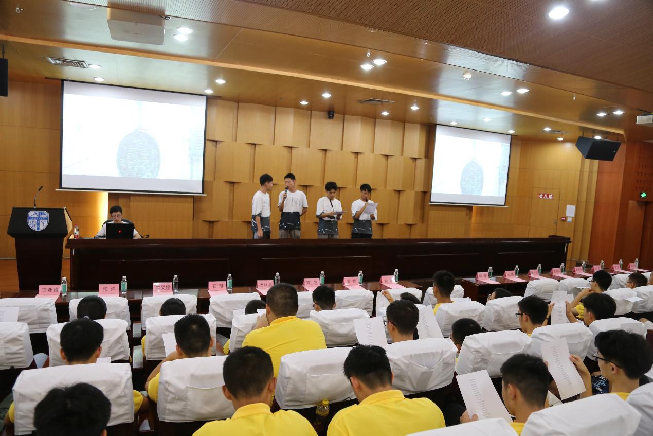 安排数院新生学习唱校歌,借此活动让新生彼此更快相融,并在活动中简要地了解学校的发展历史。