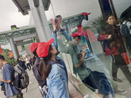 下午1时,青协的小伙伴在学校西门集合,一起前往茶店子客运站。半小时后,头戴小红帽,身着红马甲的小伙伴明确了分组分工,分布在人潮涌动的客运站的各个地方。