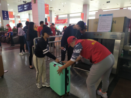 指引组的成员们耐心地为乘客们指路导航、解答问题、看管行李、协助乘客购票,构成了一道亮丽的风景线。
