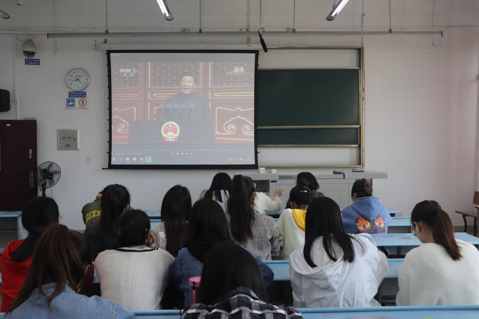 同学们首先观看了习近平在庆祝新中国成立70周年庆典上的讲话的视频。通过学习习近平主席的新思想,同学们及时了解了党和国家事业发展面临的新形势,新任务,新要求,愈加明确新时代前进和努力的方向,愈加坚定在中国共产党领导下走中国特色社会主义的道路和决心。