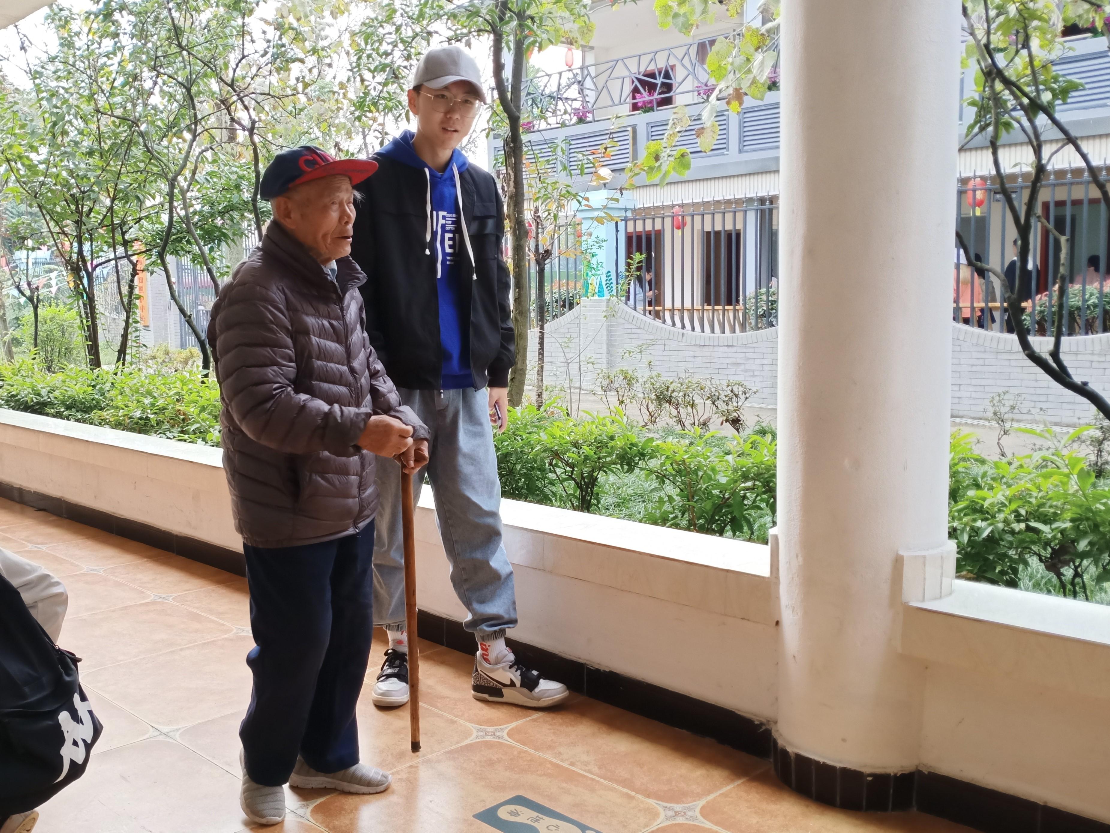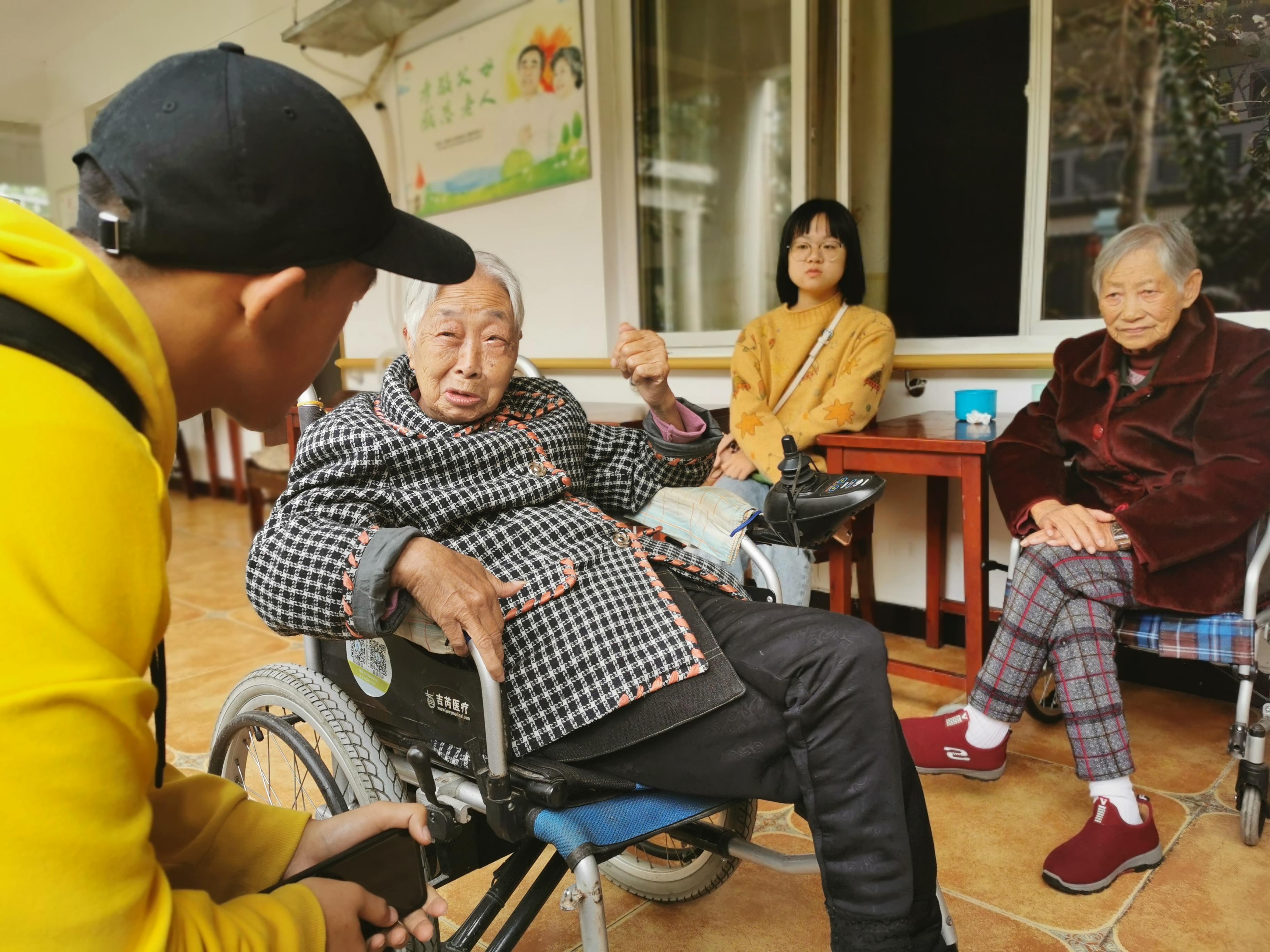 在这里面同学们见到了曾经上过战场、经历过战火纷纷仍然依旧身体硬朗的抗战老兵,也看见了一些已经在轮椅上坐着的老年人;他们有的几个凑在一起谈笑风生,有的一个人品着茶回忆着过往。