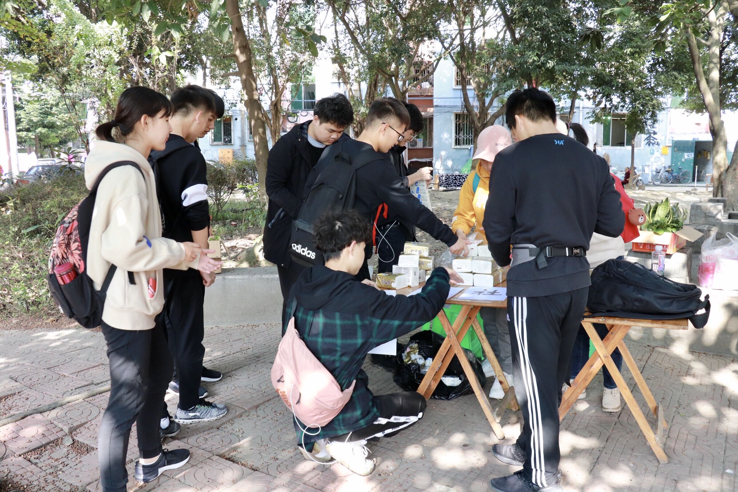 2019级拔尖班全体成员安全到达岷江社区,开展了为时两个小时的公益活动。团委书记邓思然老师、辅导员张洋老师、院团委部长参与并开展名为“青春志愿,爱在社区”的社区走访活动。在同学们到达之前,活动小组已将本次活动所需要的桌椅,讲稿以及带给居民的实惠福利等物品备齐。同学们一到达社区,就吸引了部分居民前来询问。拔尖班的志愿者们耐心地为他们讲解活动目的和活动形式,在简短的准备之后,本次活动正式开始。