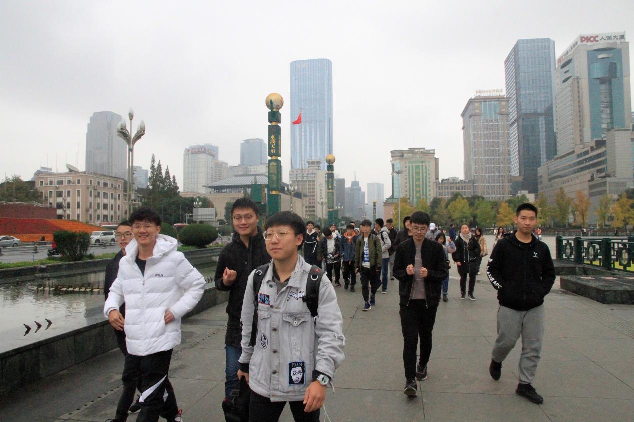当日下午1:40,两班同学从犀浦校区西门出发前往地铁站搭乘地铁二号线前往天府广场。同学们遵守交通规则,红灯停绿灯行,有秩地前往地铁站。随后,两班班委们在统计人数后,让同学们尽可能均匀地搭乘一辆地铁出发,并告知同学注意保护人身财产安全,在天府广场站D出口集合等待。