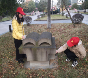 活动开始前将成员们分成两个小组,第一小组的成员负责清理“启示”石碑及其周边环境;第二小组的成员负责“书”石碑及其周边环境。