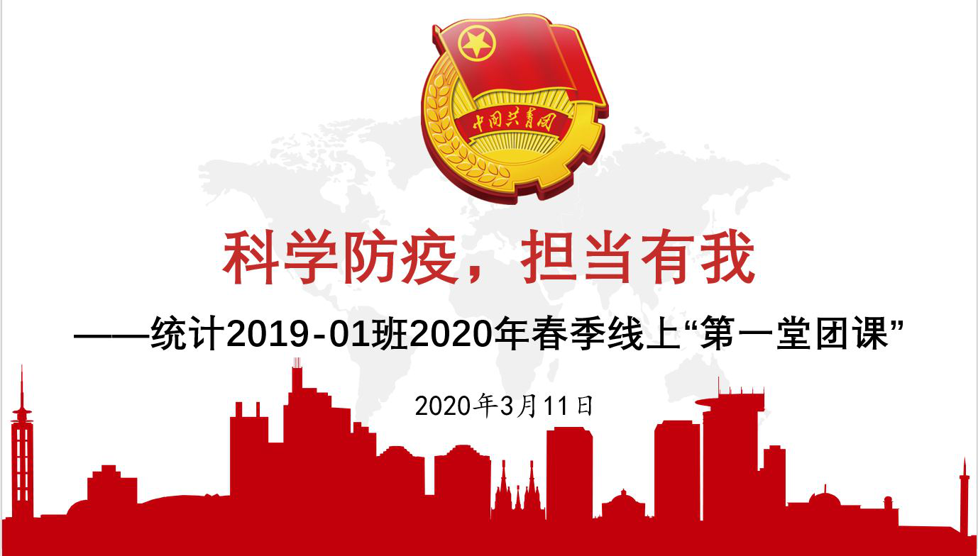 统计学2019级1班团支部2020年春季“第一堂团课”以视频会议的形式,于3月11日11:30如期开展。团课以“科学防疫,担当有我”为主题,号召支部团员青年为打赢防疫阻击战而奋斗。团课由团支部副书记郝文羽主持,支部29名团员按时参加,认真学习。茄子视频