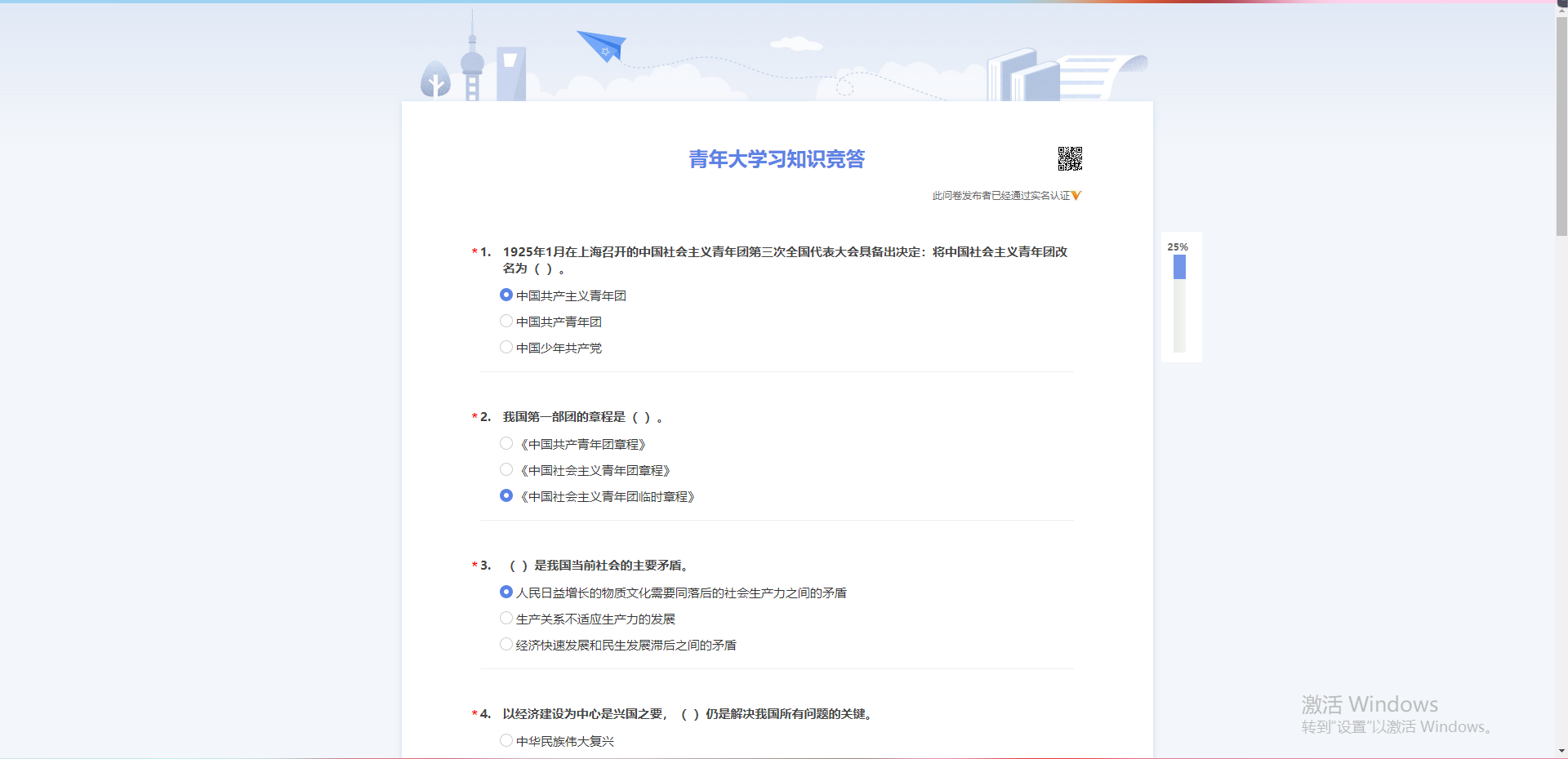活动第三项是由支部学习委员裴博尊主持,组织团员进行了线上青年大学习知识测试活动。通过问卷的填写,各位团员青年学习了习近平新时代中国特色社会主义思想和党的十九大精神,并且了解了新冠肺炎疫情防控工作最新的部署和进展。知识测试结束后,裴博尊带领团员学习了正确答案,并提醒各位团员要继续认真学习“青年大学习”,不忘初心,牢记使命。