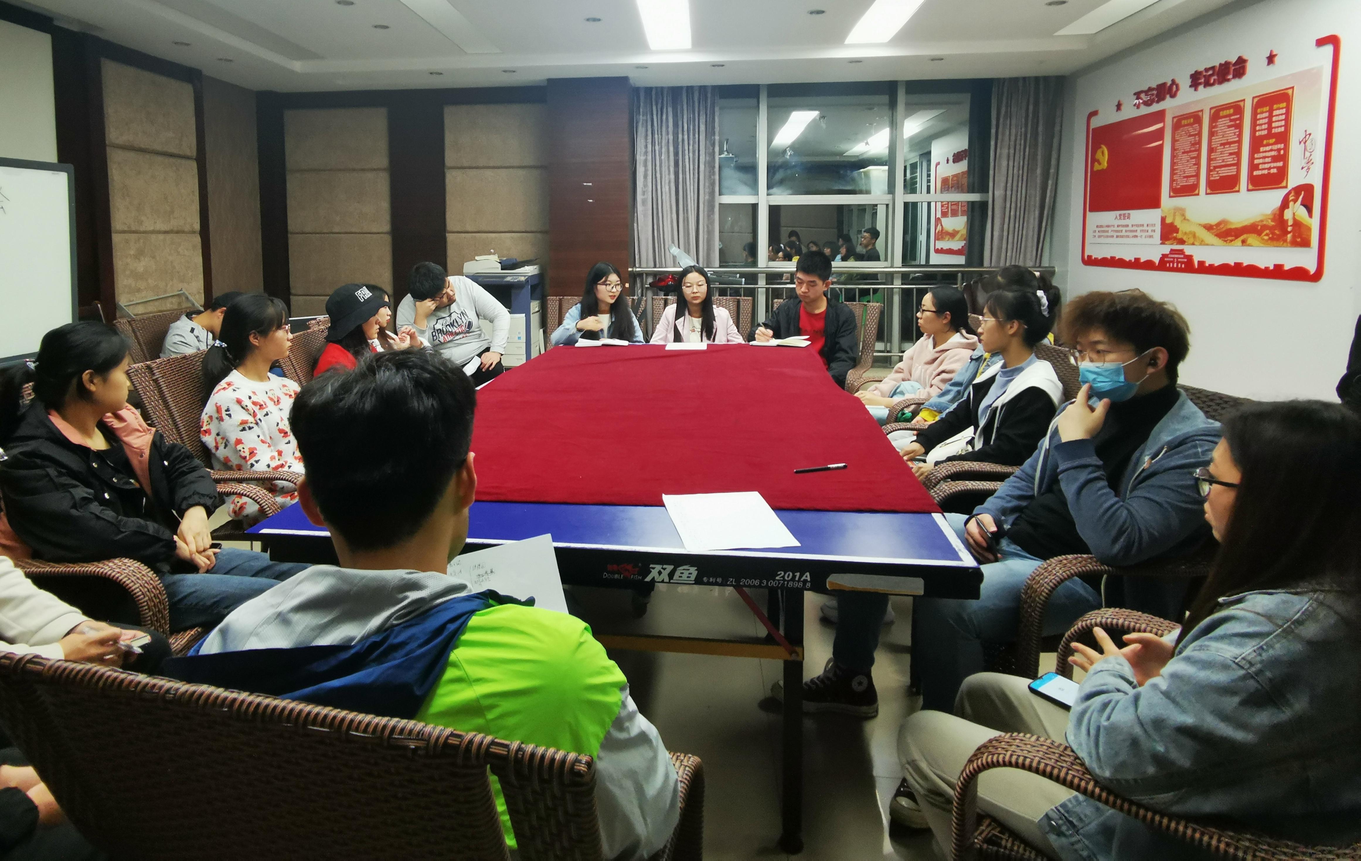 会议由自我介绍开始。由事务中心主席邓笛扬同学开始依次进行自我介绍,同时每位助理助勤同学总结各自在本月的工作,分享工作经验并反映工作时遇到的问题,然后由大家讨论并解决问题。之后由副主席吴双同学对部门人员分配情况、部门职责以及各位老师的工作进行详细地介绍,以便新同学更快地了解事务中心。之后副主席韩再生同学提出近期值班时存在的问题,并针对性地对存在的问题提出建议。紧接着确定素质拓展的时间并统计参与人员。最后,由主席邓笛扬总结会议。