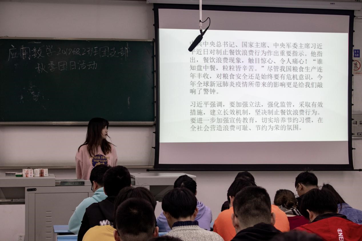应用数学2018级2班团支部于2020年10月24日下午5:00于X2532开展了以“厉行节约,反对浪费”为主题的团日活动。参加此次活动的有数学二班团支部所有团员和茄子视频