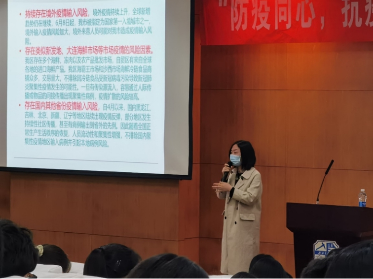 10月29日下午3时,“防疫同心,抗疫同行”防疫讲座于图书馆1号报告厅顺利举行。此次讲座旨在帮助2020级新生了解新冠疫情,学习防疫知识,提高防疫素养,积累经验;同时介绍一些秋冬季传染病知识,帮助新生们远离疾病,健康生活。