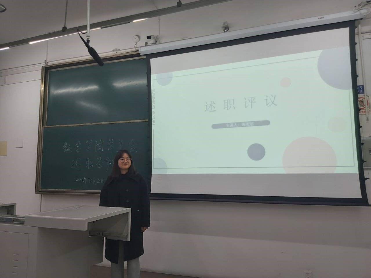 会议第三项是各评议员对学生会成员的述职评议进行打分,周睿老师并对以往学生会工作的得与失做了总结,并对学生会给予了更高的期望。