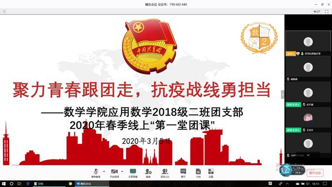 应用数学2018级2班团支部2020年春季线上第一堂团课顺利开展