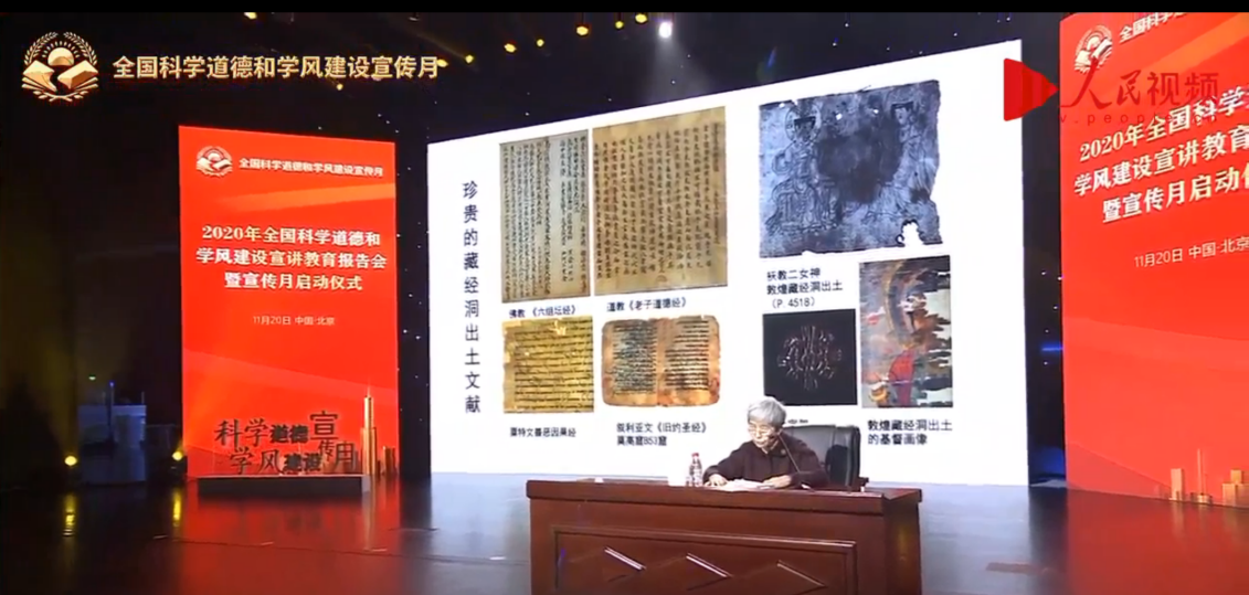 报告结合樊锦诗、戚发轫两位专家自身科研实践和学术成长经历并围绕报告会主题展开,着重向青年学子讲授如何自觉践行和大力弘扬爱国、创新、求实、奉献、协同、育人的科学家精神,加强科学道德和学风建设,立鸿鹄志,做奋斗者,为实现“两个一百年”奋斗目标、实现中华民族伟大复兴的中国梦而不懈奋斗。