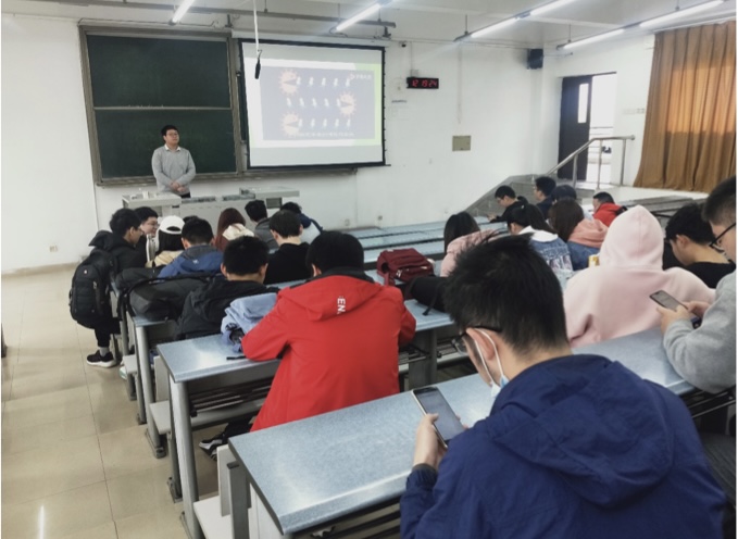 接着,黄朝建通过简短的视频向大家展示了传染病传播的巨大危害。并且号召各位同学养成良好的生活习惯和有规律的作息时间,保持愉快的心情。黄朝建倡议各位同学积极宣传预防重大传染病的知识,发动身边人讲好卫生,预防各种疾病。
