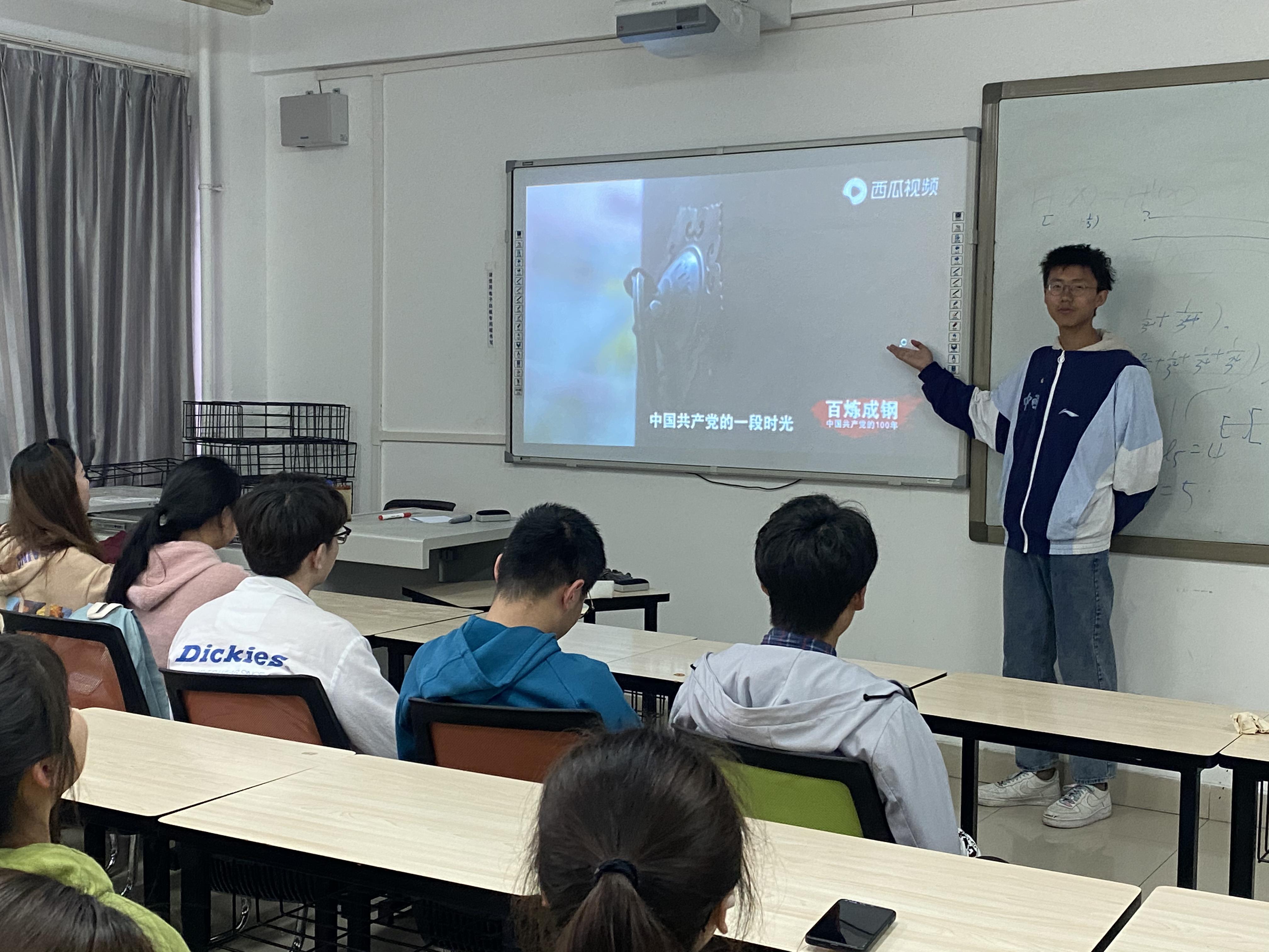 团课第一项,由团支书张翔为大家讲解中国共产党的建党历程,张翔为大家细致地讲述了中国共产党100年来筚路蓝缕的艰难历程与这些年来党取得的伟大成就,团支部的同学们认真听讲。