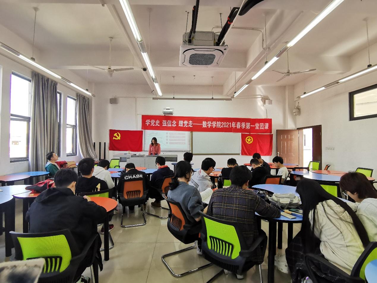 应用数学2019级2班团支部于4月29日09:50在X9503开展了“开学第一堂团课”。本次团课由张素子老师主持,支部25名团员按时参加。