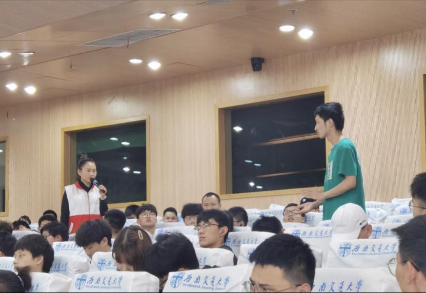 来自郫都区红十字会的黄丽老师为同学们讲解了生活中常见的紧急状况及其处理方法。黄老师讲解生动,互动频繁,使让同学们在互动中掌握了应急救护的小知识,整个讲座轻松愉快。