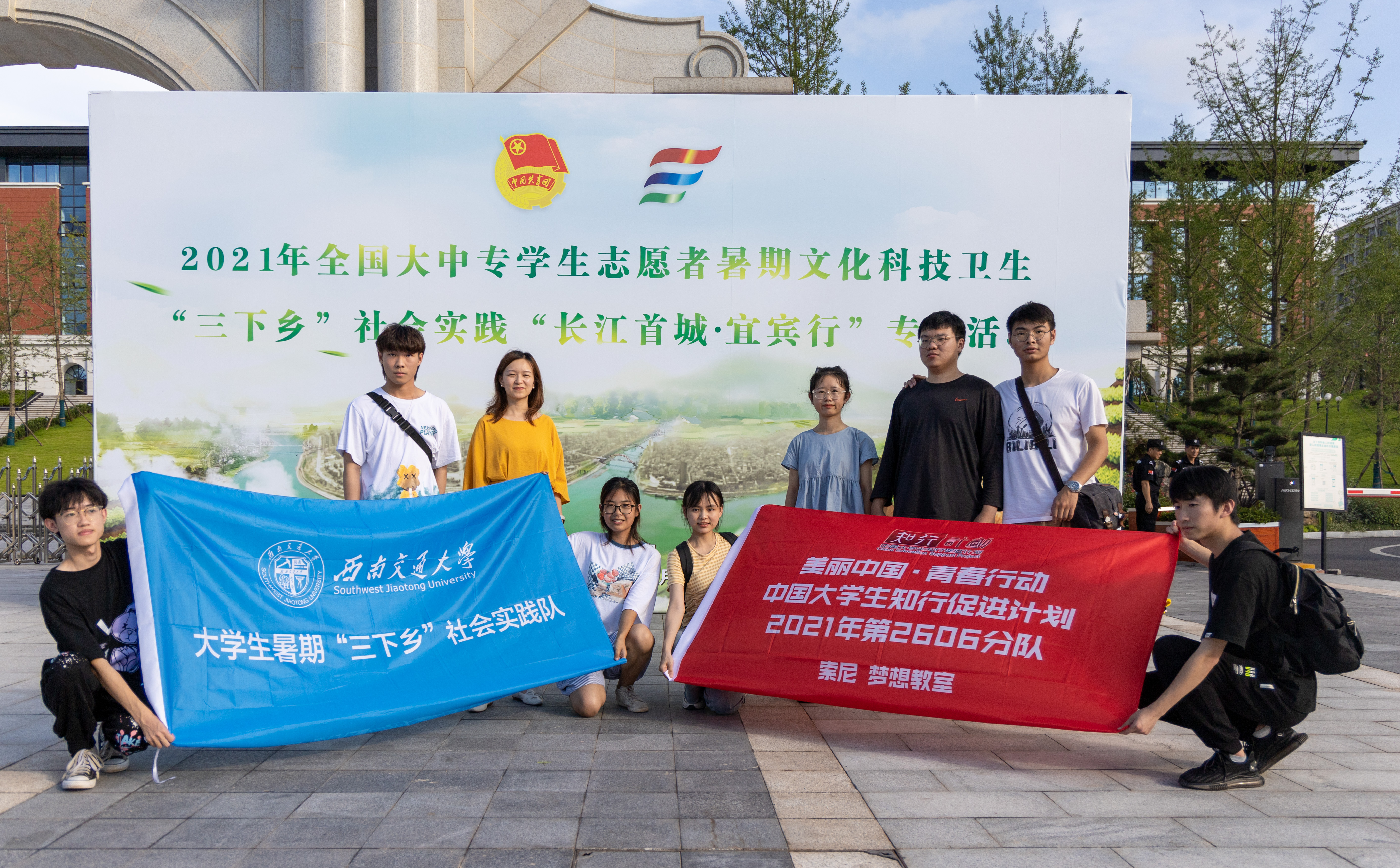 与人文学院的八名同学一同组建“SWJTU点梦成行”实践团队。团队于7月10日前往宜宾市叙州区樟海镇,开展为期十天的暑期支教及传统文化调研实践活动。