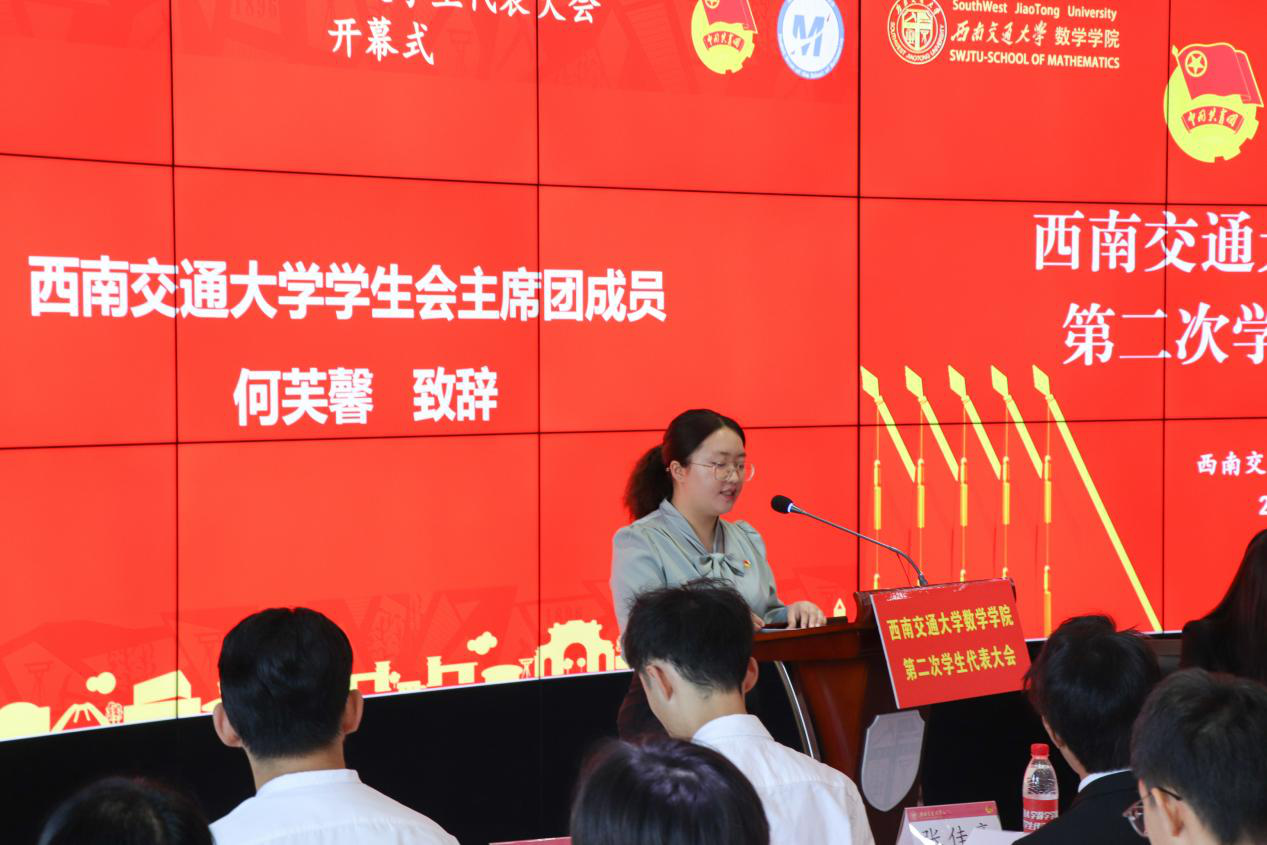为深入学习贯彻团中央和全国学联关于学生会深化改革的各项要求,进一步坚持巩固和完善学生代表大会制度,按期规范召开学生代表大会,将学代会服务同学成长、回应同学诉求、维护同学权益、选拔学生骨干的核心职能落到实处。在学院党委的坚强领导下、在学院团委和校学生会的悉心指导下,按照《中共茄子视频 委员会关于推进学生会(研究生会)深化改革的实施方案》要求,9月19日上午,茄子视频 第二次学生代表大会在犀浦校区四号教学楼X4243会议室隆重召开。本次大会应到学生代表60人,实到59人。茄子视频 学生会主席团成员何芙馨、茄子视频 团委书记邓思然、团委副书记张素子、茄子视频 辅导员邱君捷、周睿、谢健祥以及各兄弟学院学生会主席团成员和茄子视频 各团学组织主席团成员、各团支部书记出席大会开幕式。开幕式由茄子视频 学生会主席团成员周义杰主持。